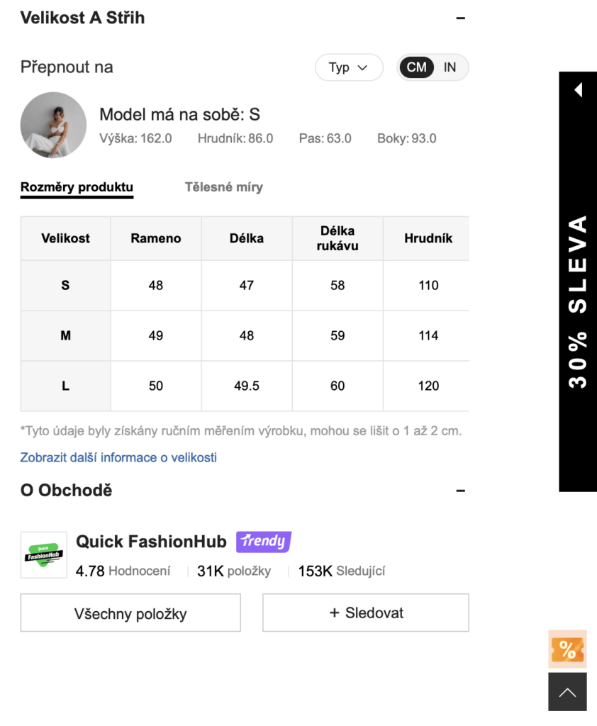 „Každý kousek má jinou velikostní tabulku, co je u jednoho M, je u druhého S. Že koupíte svoji evropskou velikost, neznamená, že na Shein to bude stejné,“ vysvětluje jedna z uživatelek.